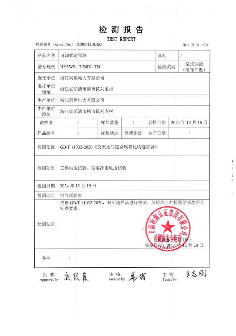 可卸式避雷器檢測報告